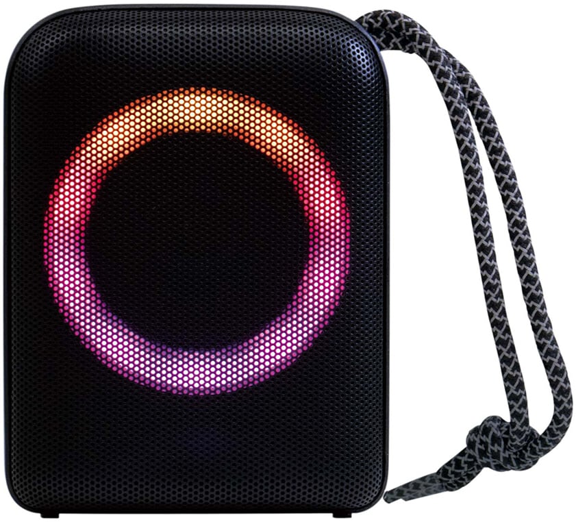 【光るパーティースピーカー】音に合わせてリングのように光るスピーカー。Bluetooth接続、microSD対応。小さいながら7Wのスピーカー搭載で迫力のあるサウンド。